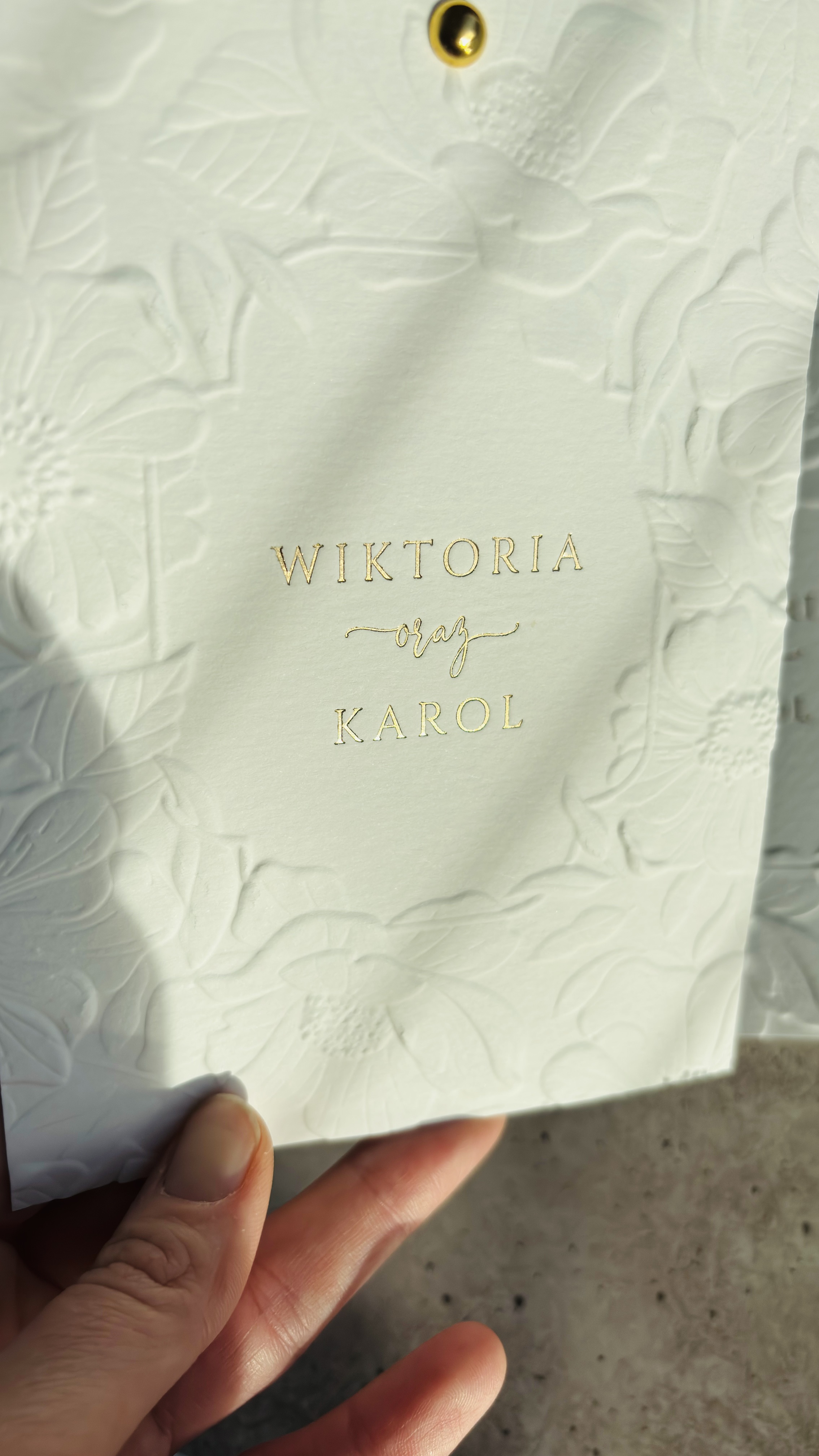 Eleganckie i ponadczasowe Zaproszenie Ślubne z delikatnymi tłoczeniami- idealne na wyjątkową i klasyczną ceremonię ślubną oraz przyjęcie weselne w stylu glamour.